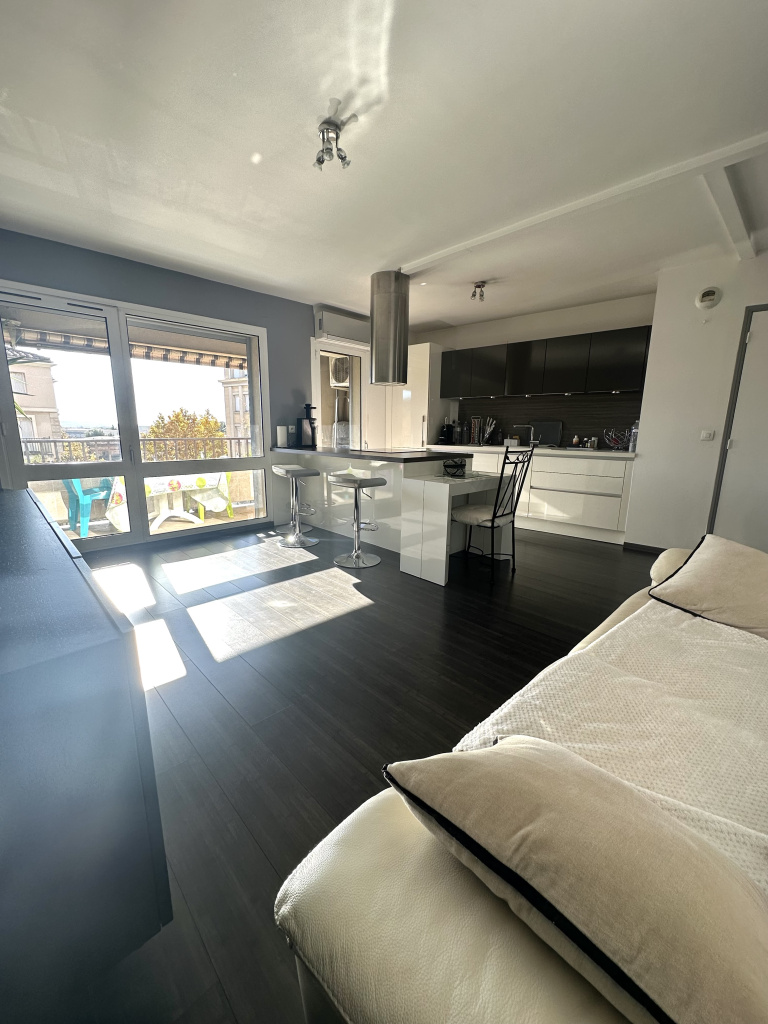 Cet appartement est composé d'une entrée, une cuisine équipée ouverte sur un vaste et lumineux séjour donnant accès à un grand balcon, deux chambres, une jolie salle de bains et un wc.